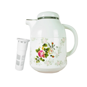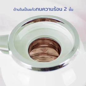 * กระติกกรองชาภายในเป็นแก้วทนความร้อน 2 ชั้น ระบบสูญญากาศ. ภายนอกผลิตจากเหล็กกล้าพิมพ์ลาย สวยงาม.