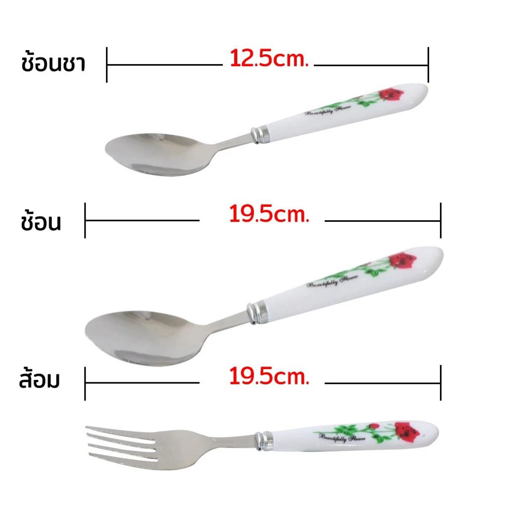 RRS ช้อน-ส้อม 6 คู่ ช้อนชา 6 คัน พร้อมที่ตั้ง